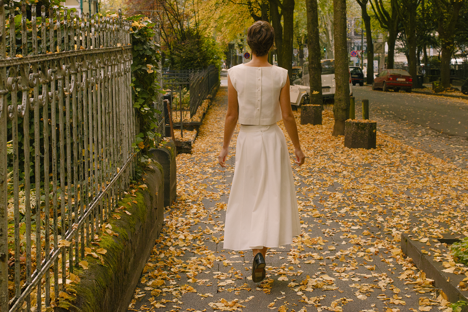 Carla Nicieza wearing WRAP SKIRT in Organic Cotton Voile